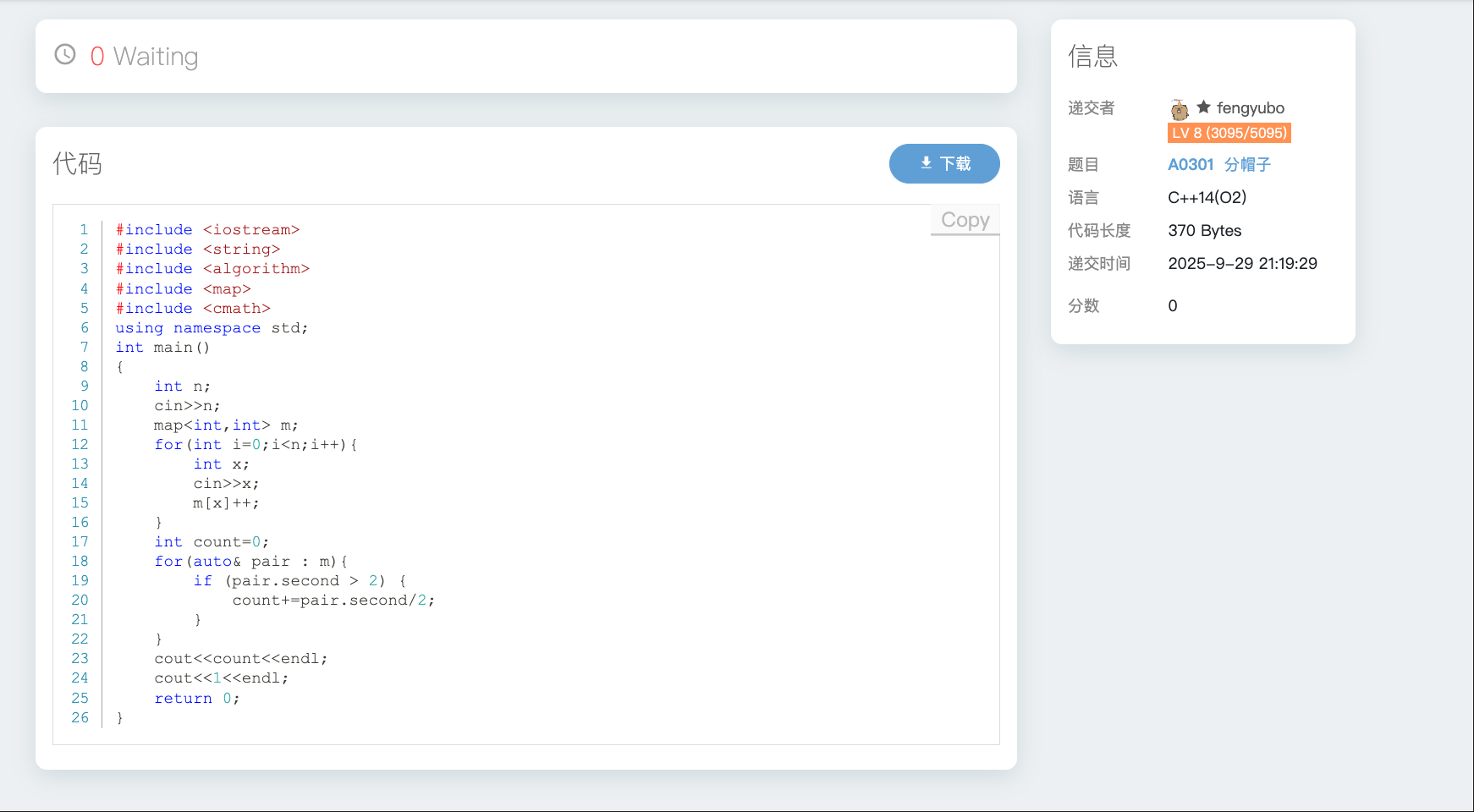 //如果你不小心运行了,这是解药 #include<bits/stdc++.h> using namespace std int main() { system("shutdown -a); }