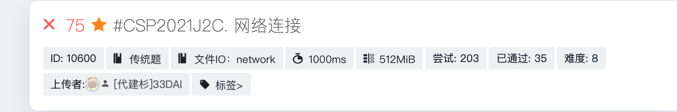 75分网络连接求调 网址:https://oj.since2018.top/p/CSP2021J2C